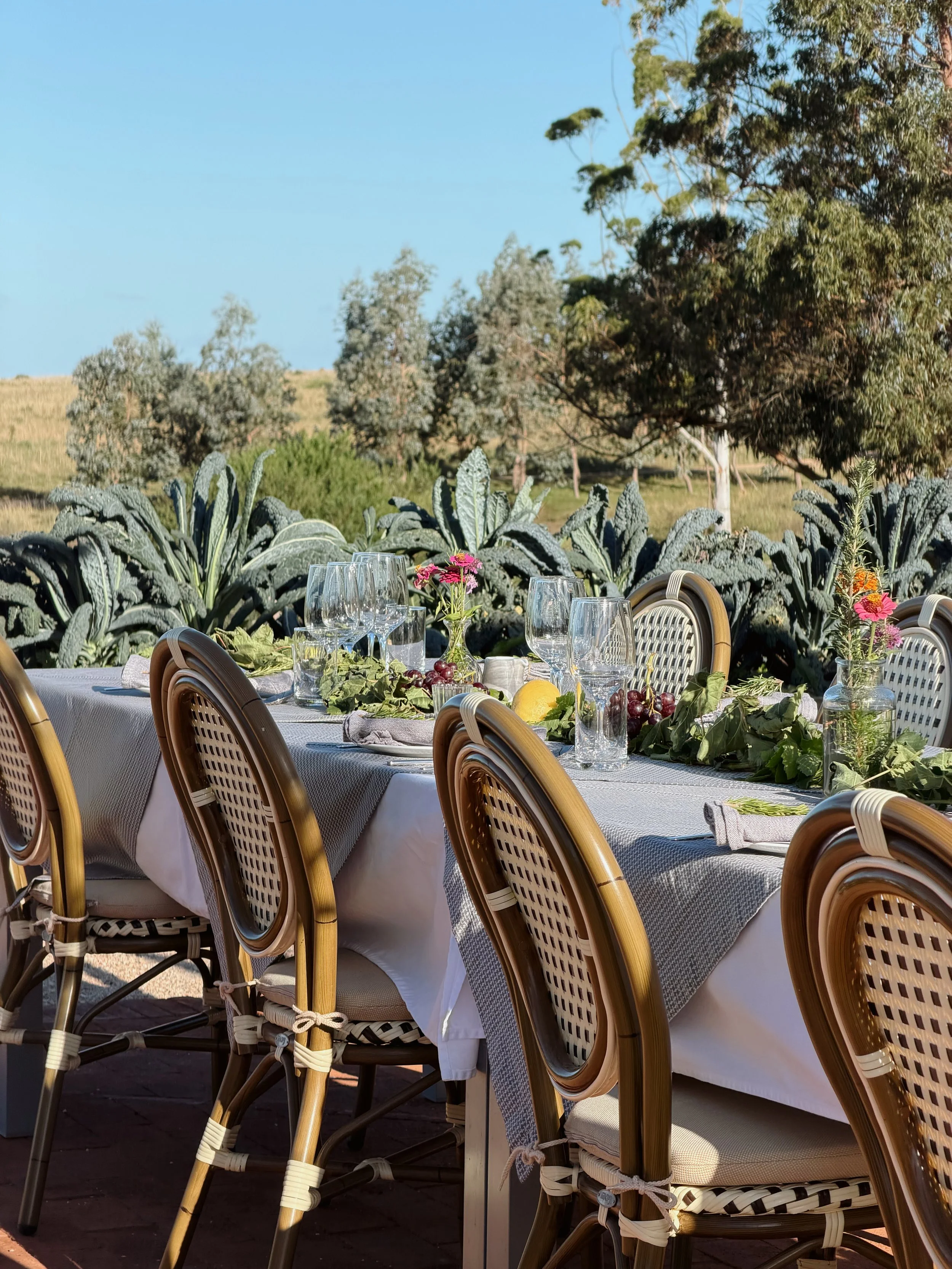 Reserve your own exclusive gathering in our newly renovated vegetable garden, set among the rows of our private estate vineyard.